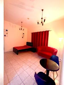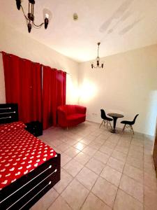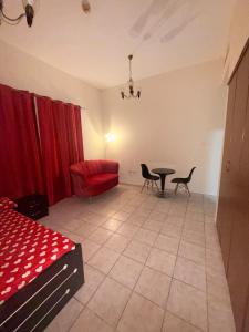 Burjuman mall nabízí klimatizované ubytování s vlastní saunou a vířivkou v Dubaji, pouhých 8 km od Burdž Chalífy a 8,5 km od věže Burdž Al Arab. Tento apartmán má balkon, terasu a jednu místnost se třemi lůžky.