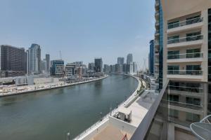 Dotato di piscina privata e aria condizionata, Canal View, Partial Burj Khalifa View, Brand New si trova a Dubai e comprende una camera. L'appartamento offre splendide viste parziali sul Burj Khalifa e dispone di un balcone.