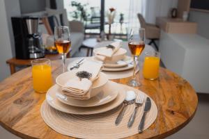 Apartmán má jednu ložnici se dvěma lůžky a obývací pokoj s rozkládacím gaučem. Plně vybavený kuchyňský kout obsahuje troubu, varnou desku, ledničku, mikrovlnnou troubu, toustovač, kávovar, rychlovarnou konvici i veškeré nádobí potřebné ke vaření. V koupelně najdete pantofle, bezplatné toaletní potřeby včetně šamponu a kondicionéru, bidet, sprchu i soukromou saunu přímo v apartmánu.