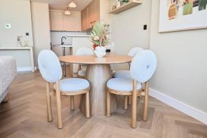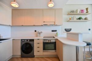 The apartment features two beds within its single room layout, complemented by air conditioning and hardwood flooring throughout. Guests will find a fully equipped kitchen with an oven, microwave, stovetop, refrigerator, coffee machine, electric kettle as well as kitchenware and tea and coffee making facilities. Additional in-room amenities include a washing machine, iron, safe deposit box, seating area with sofa, work desk, clothes drying rack and baby cot or crib provided upon request.