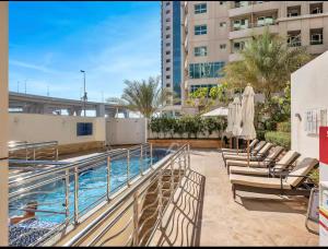 Situado a solo 1,3 km de Marina Beach y a 1,4 km de The Walk en JBR, Centric Flat con vista al mar, ideal para una estancia en la playa, amplia terraza y capacidad para 9 personas es un apartamento con aire acondicionado en Dubái que cuenta con piscina privada y vistas al jardín. Esta espaciosa propiedad incluye una habitación con cinco camas, un balcón y acceso a una gran terraza.