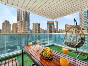 El apartamento se encuentra frente a la playa, ofreciendo acceso directo a la misma y proximidad a un parque acuático. Los aficionados al golf apreciarán el campo cercano situado a menos de 3 km. El aeropuerto internacional Al Maktoum está a 24 km.