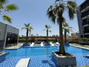 Situato a Dubai, Chaimaa Avenue offre una piscina all'aperto disponibile tutto l'anno e una sauna privata. Questo appartamento dispone di una camera con due letti, con vista sul giardino dal balcone e dalla terrazza.