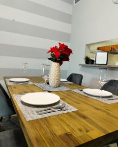Cet appartement insonorisé dispose d’un coin cuisine entièrement équipé avec four, micro-ondes, plaques de cuisson, réfrigérateur, grille-pain, bouilloire électrique et ustensiles de cuisine ainsi qu’une table à manger. Le séjour comprend un canapé avec espace salon et une télévision tandis que la chambre offre un lit avec linge de maison. Parmi les équipements supplémentaires figurent une machine à laver, un fer à repasser, une armoire ou penderie, un coffre-fort ainsi qu’un étendoir.