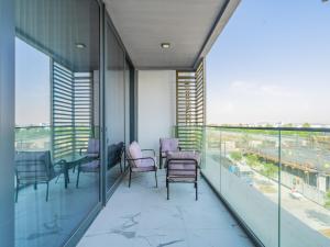 Charmant appartement avec balcon près de Dubai Hills Park, situé à Dubaï, comprenant une chambre offrant une vue sur la ville depuis son balcon. Cet appartement climatisé dispose d’un coin cuisine entièrement équipé et d’un parking privé sur place, ainsi que d’une connexion Wi-Fi gratuite accessible dans tout l’établissement.