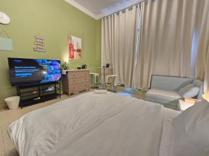 Das klimatisierte Studio verfügt über ein Schlafzimmer mit einem Bett sowie ein eigenes Badezimmer mit Badewanne und Dusche sowie Bidet und Haartrockner. Zur Zimmerausstattung gehören Bügelbrett mit Bügeleisen, Waschmaschine, Minibar, elektrischer Wasserkocher, Schlafsofa, Kleiderschrank oder Schrank sowie Wäschetrocknerständer, zudem sind Babybett oder Kinderbett verfügbar. Die Böden sind gefliest oder aus Marmor, Handtücher und Bettwäsche werden bereitgestellt.