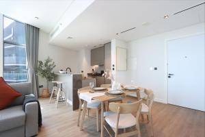 Goście mogą korzystać z codziennych usług sprzątania oraz pomocy konsjerża. Rozrywkę zapewnia telewizor z płaskim ekranem i dostępem do serwisów streamingowych takich jak Netflix. Obiekt udostępnia windę na wyższe piętra wraz z tą kawalerką oraz całodobową ochronę przy prywatnym wejściu.