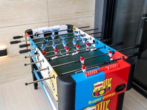 Le logement comprend une chambre dotée de trois lits, un salon ainsi qu’une cuisine entièrement équipée comprenant un coin cuisine et des installations complètes. Parmi les équipements essentiels figurent la climatisation, le chauffage, une machine à laver, un coffre-fort ainsi qu’un bain à remous en chambre pour votre détente.