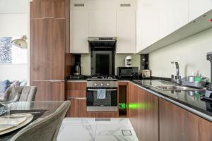 Die stilvolle 1-Zimmer-Wohnung „Chic 1BR Flat in Biz Bay, Pool & Gym & Balkon“ befindet sich nur 1,8 km vom Dubai Fountain entfernt und verfügt über eine Terrasse sowie Aufzugszugang. Die Unterkunft bietet eine voll ausgestattete Küchenzeile und moderne Annehmlichkeiten für einen komfortablen Aufenthalt.
