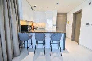 Situato a 9,1 km dalla Dubai Fountain, Chic Retreat 1BR nel District One Meydan è un appartamento climatizzato a Dubai che offre un balcone e parcheggio privato gratuito. Questa struttura non fumatori dispone di una camera con vista sulla città circostante.