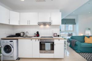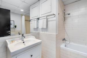 The air-conditioned unit consists of one separate bedroom and a living room furnished with a sofa bed and seating area featuring a television. The fully equipped kitchen includes an oven, stovetop, refrigerator, microwave, toaster, coffee machine, electric kettle, dining table as well as all necessary kitchenware. In addition to the bathroom fitted with both bathtub and shower options, guests will find complimentary toiletries alongside towels and bed linen provided for added comfort.