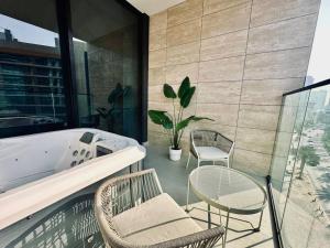 Ubicado en el distrito de Business Bay de Dubái, Chic Studio con Jacuzzi al aire libre, parking y gimnasio es un amplio apartamento que cuenta con piscina privada y acceso por ascensor. Este alojamiento de una sola habitación ofrece una combinación única de confort y ocio con jacuzzi al aire libre, WiFi gratis y aparcamiento privado.