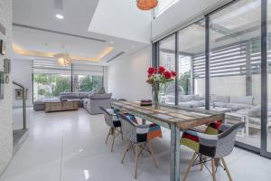 Den Gästen steht kostenfreies WLAN im gesamten Bereich sowie Fernseher zur Verfügung. Die Außenanlage bietet einen Swimmingpool vor Ort und Grillmöglichkeiten für den Freizeitbereich im Freien. Dieses Nichtraucher-Ferienhaus stellt zudem Internetdienste für die Verbindung bereit.
