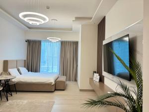 Guests benefit from television entertainment along with internet access supported by wireless Wi-Fi throughout the apartment. This property ensures practical amenities such as these combined with its prime location near key Dubai attractions.