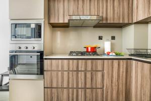 K dispozici je také soukromá sauna přímo v apartmánu a možnost využití fitness centra poblíž. Plně vybavená kuchyň nabízí moderní spotřebiče - lednici, myčku nádobí, troubu, toustovač i mikrovlnnou troubu plus zařízení na přípravu čaje/kávy spolu s potřebným nádobím. Další služby zahrnují bezplatné parkování v garáži na místě, nepřetržitý provoz recepce, kouřové detektory, hasicí přístroj, výtah do pokojů, Wi-Fi pokrytí všude doplněné o televizor podporující streamování.