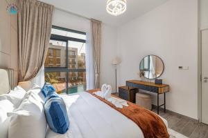 Moderne 2-Zimmer-Wohnung in Belgravia Square JVC, Dubai - eine großzügige, klimatisierte Unterkunft mit Poolblick und Terrasse. Diese Einzimmerwohnung bietet kostenfreies WLAN und einen privaten Parkplatz. Zur Ausstattung gehören Aufzug sowie ganztägiger Sicherheitsdienst.