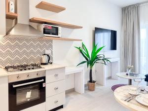 El apartamento incluye una cocina totalmente equipada que combina cocina americana y cocina completa, además de un baño con jacuzzi privado. Entre sus comodidades adicionales destacan aire acondicionado, lavadora, cuna para bebés y televisión pantalla plana.