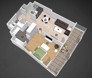 Przestronny apartament obejmuje jedną sypialnię i łazienkę oraz salon do relaksu. Goście mają do dyspozycji w pełni wyposażony aneks kuchenny do przygotowywania posiłków, dwa łóżka dla komfortu wypoczynku, klimatyzację na całym obszarze mieszkania, pralkę dla wygody użytkowników, ogrzewanie oraz telewizor z płaskim ekranem.