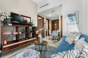 El apartamento está cerca de varios lugares emblemáticos populares, como el Dubai Mall, ubicado a 1,7 km, City Walk Mall, a 5,5 km, y el Aeropuerto Internacional de Dubái, que se encuentra a 16 km. Los huéspedes pueden disfrutar durante todo el año de piscinas al aire libre junto con una terraza para tomar el sol y relajarse bajo el cielo abierto.
