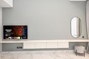 Les hôtes profitent du Wi-Fi gratuit dans tout l’appartement ainsi que d’une télévision écran plat avec options streaming pour leurs divertissements. L’immeuble bénéficie d’un ascenseur desservant les étages supérieurs où se situe ce logement doté d’une entrée privée sécurisée par une surveillance assurée toute la journée. Le parking sur place est offert aux visiteurs arrivant en voiture. Une piscine sur le toit-terrasse ainsi qu’un centre fitness invitent à la détente tandis que vos repas peuvent être pris au restaurant ou au café présents sur place , un service de livraison alimentaire est également disponible.