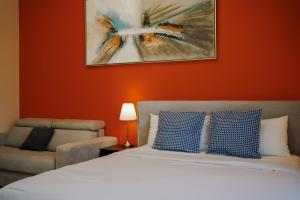 Внутри номера гости найдут одну кровать и детскую кроватку для семей с маленькими детьми.