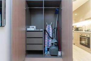 V apartmánu je jedna postel a vybavení jako ručníky a povlečení. K dispozici je plně vybavený kuchyňský kout s troubou, mikrovlnnou troubou, varnou deskou, lednicí a přípravou na čaj i kávu. Další vybavení zahrnuje klimatizaci, pračku, dětskou postýlku a základní potřeby do koupelny jako mýdlo na tělo, šampon a fén.