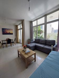 L’hébergement comprend trois chambres séparées avec un total de quatre lits, ainsi qu’un salon équipé d’un canapé-lit. La cuisine entièrement équipée dispose d’appareils modernes tels qu’une plaque de cuisson, un réfrigérateur, un micro-ondes, un grille-pain et une bouilloire électrique. Les équipements essentiels incluent également un fer à repasser, un étendoir à linge, un lit bébé ou berceau, des serviettes et la climatisation.