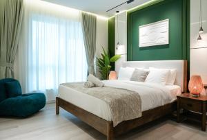 Apartament składa się z dwóch sypialni wyposażonych w trzy łóżka oraz trzech łazienek z prysznicem i wanną. Do dyspozycji gości są także bezpłatne kosmetyki (szampon i odżywka), prywatna sauna oraz jacuzzi w pokoju. W całym mieszkaniu działa klimatyzacja, podłogi części dziennej wykończono drewnem. Dodatkowo znajduje się tu część wypoczynkowa z rozkładaną sofą, garderoba, żelazko wraz ze stolikiem do prasowania oraz biurko do pracy.