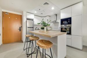 Apartmán DAMAC Waves - Breathtaking One Bedroom se nachází v Dubaji, pouhý 1 km od pláže Marina Beach a 1,3 km od The Walk at JBR. Tento klimatizovaný jednopokojový apartmán s balkonem nabízí soukromý vstup a přístup k venkovnímu bazénu.