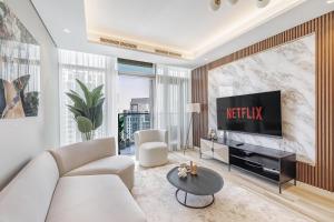 Situé à seulement 1,3 km du Burj Khalifa, le Daniels Burj Khalifa View 2BR au Paramount Midtown à Dubaï propose un hébergement spacieux climatisé avec une piscine privée et une connexion Wi-Fi gratuite. Cet appartement comprend deux chambres et deux salles de bains, ainsi qu’un balcon offrant une vue imprenable.