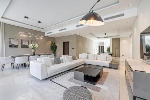 This air-conditioned villa comprises five bedrooms, six bathrooms equipped with both bathtubs and showers, as well as one living room. Guests can enjoy modern amenities such as an oven, microwave, stovetop, refrigerator, coffee machine, electric kettle, dining table, kitchenette facilities and complete kitchenware. Additional comforts include a flat-screen TV, washing machine, safety deposit box along with ironing facilities including an iron and ironing board.
