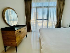 Апартаменты Dar Vacation - Partial Palm View High Floor 2BR с кондиционером и частным бассейном расположены в Дубае, всего в 3,6 км от The Walk at JBR и в 5,3 км от The Montgomery. Этот апартамент на пляже предлагает выход на балкон с уличной мебелью, бесплатную частную парковку с зарядной станцией для электромобилей и бесплатный Wi-Fi на всей территории.