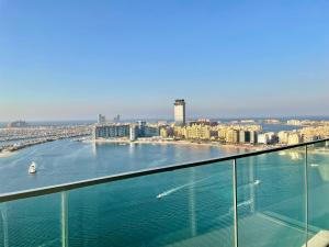 El apartamento Dar Vacation - Best Magnificent Front Palm View 2BR, ubicado en Dubái, ofrece una zona de playa privada y vistas al mar. Se encuentra a solo 3,6 km de The Walk en JBR y a 5,3 km de The Montgomery. Este apartamento frente al mar cuenta con aire acondicionado en una habitación, conexión WiFi gratuita y aparcamiento privado sin coste adicional.