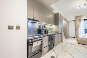 Il monolocale presenta un letto confortevole e un angolo cottura completamente attrezzato con frigorifero, forno, microonde, piano cottura, tostapane, macchina per il caffè, bollitore elettrico, utensili da cucina e tavolo da pranzo. Gli ospiti troveranno inoltre servizi come ferro da stiro, cassaforte, lavatrice, armadio/guardaroba e sveglia. Il bagno privato è completo di doccia, bidet e articoli da toilette in omaggio quali shampoo e sapone per il corpo.