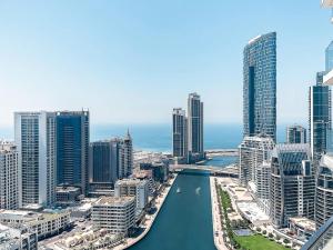 Situato a due passi da Marina Beach e The Walk at JBR, Deluxe Marina View 2BR - Stella Maris Retreat è un appartamento recentemente ristrutturato a Dubai che offre una piscina a sfioro e un lounge in comune. Questa spaziosa proprietà comprende una camera con splendida vista sulla marina e dispone di parcheggio privato gratuito oltre al WiFi gratuito in tutta la struttura.