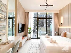 Das Deluxe Studio mit Balkon im Aziz Riviera ist eine Apartmentunterkunft in Dubai, 11 km vom Dubai Fountain entfernt. Das klimatisierte Einzimmer-Apartment verfügt über einen Balkon mit Aussicht sowie Zugang zu einer Terrasse.