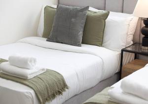 Przestronny apartament obejmuje dwie sypialnie z pięcioma łóżkami, salon z sofą oraz dwie łazienki wyposażone zarówno w wannę, jak i prysznic. Goście mają do dyspozycji w pełni wyposażony aneks kuchenny ze stołem grzewczym, piekarnikiem, mikrofalówką, lodówką, tosterem oraz ekspresem do kawy i zestawem do parzenia herbaty wraz ze sprzętem kuchennym umożliwiającym przygotowanie posiłków. Dodatkowe udogodnienia w pokoju to klimatyzacja, dźwiękoszczelne pomieszczenia zapewniające komfort wypoczynku, żelazko z deską do prasowania i prasą do spodni, ręczniki, pościel, pralka, sejf, garderoba, biurko robocze, suszarka na ubrania, łóżeczko dziecięce dostępne na życzenie, telewizor z płaskim ekranem przy łóżku oraz przystosowanie dla osób poruszających się na wózkach inwalidzkich.