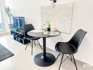 Apartmán je také výhodně situován 1,2 km od The Walk at JBR a v dosahu dalších zajímavostí jako The Montgomery (6,9 km), Gurunanak Darbar Sikh Temple (6,6 km), Mall of the Emirates (12 km) nebo Aquaventure Waterpark a Burj Al Arab Tower přibližně 15 km daleko. Dubai Autodrome je vzdálený 18 km a mezinárodní letiště Al Maktoum leží 24 km od objektu.