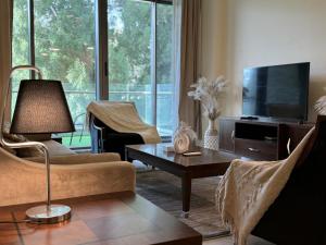 Plně vybavený kuchyňský kout disponuje ledničkou, mikrovlnnou troubou včetně kuchyňského nádobí a elektrickou konvicí spolu se stolem na jídlo. Další vybavení zahrnuje bezplatné WiFi dostupné ve všech částech apartmánu, televizory s plochou obrazovkou, pračku, ručníky, soukromé neplacené parkování přímo na místě a výtah pro přístup do vyšších pater.