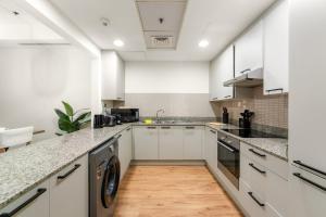 L’hébergement comprend une chambre avec un lit ainsi qu’un coin cuisine entièrement équipé avec four, micro-ondes, plaques de cuisson, réfrigérateur, grille-pain, machine à café et bouilloire électrique. La salle de bains dispose d’un bain à remous et propose des articles de toilette gratuits tels que shampoing, après-shampoing et savon corporel ainsi que des chaussons et un sèche-cheveux. Parmi les autres équipements figurent la climatisation, une télévision écran plat, un canapé-lit, un fer et sa planche à repasser, un étendoir à linge, un coffre-fort ainsi qu’une machine à laver.
