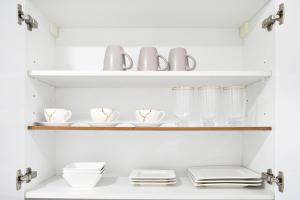 Ten klimatyzowany apartament typu studio wyposażony jest w jedno łóżko oraz aneks kuchenny w pełni wyposażony w płytę grzejną, piekarnik, zmywarkę, mikrofalówkę, lodówkę, czajnik elektryczny i naczynia kuchenne. Część wypoczynkowa została uzupełniona sofą i stołem jadalnym. Dodatkowo do dyspozycji gości są żelazko wraz z deską do prasowania, szafa ubraniowa, suszarka na ubrania, pralka oraz ręczniki i pościel.