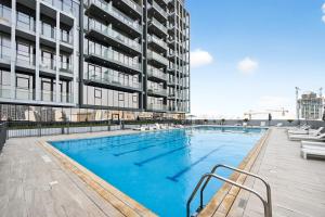 Apartament typu studio w Dubaju, Dubai JVC - Bloom Tower B - z balkonem, siłownią i basenem - by Rentujemy to przestronne mieszkanie z prywatnym basenem oraz balkonem z widokiem na miasto. Obiekt obejmuje jeden pokój i oferuje gościom unikalne udogodnienia wellness, takie jak wanna z hydromasażem oraz sauna w pokoju.