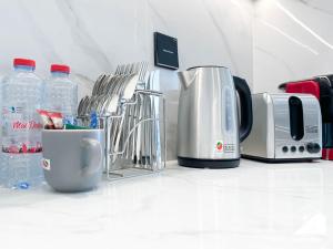 Toto klimatizované ubytování zahrnuje jednu ložnici s jedním lůžkem a dvě koupelny vybavené vanou nebo sprchou, fénem a bezplatnými toaletními potřebami včetně šamponu a mýdla na tělo. Plně vybavený kuchyňský kout obsahuje troubu, varnou desku, lednici, mikrovlnnou troubu, toustovač, rychlovarnou konvici i kuchyňské nádobí spolu s jídelním stolem pro pohodlí hostů. V apartmánu jsou také pračka, žehlička, topení, sedací souprava a šatní skříň.
