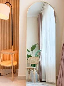 Apartament dysponuje jedną sypialnią oraz łazienką wyposażoną w wannę, bidet, kapcie oraz bezpłatne kosmetyki (mydło do ciała, szampon i odżywka). W pełni wyposażony aneks kuchenny zawiera nowoczesne udogodnienia takie jak: zmywarka, mikrofalówka, lodówka, płyta grzewcza, ekspres do kawy oraz zestaw do parzenia kawy i herbaty wraz ze sprzętem kuchennym. Dodatkowe wyposażenie pokoju obejmuje klimatyzację, telewizor z płaskim ekranem oraz pralkę z funkcją suszarki. Pościel i ręczniki są zapewnione.