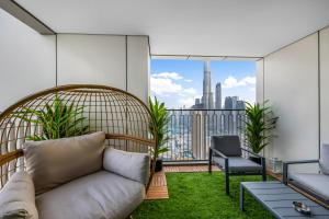 Das Durrani Homes - Majestic 4-Zimmer-Apartment mit privatem Pool und vollständigem Blick auf den Burj Khalifa befindet sich in Dubai, nur 1,2 km vom Dubai Mall und 1,5 km vom Burj Khalifa entfernt. Die geräumige Wohnung verfügt über vier Schlafzimmer und bietet vom Balkon aus Gartenblick.