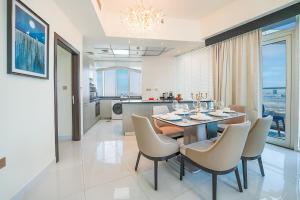 В апартаментах две спальни с двумя кроватями, три ванные комнаты каждая оборудована гидромассажной ванной. Кухня оснащена мини-кухней для приготовления пищи и хранения продуктов. Дополнительные удобства включают стиральную машину, детскую кроватку по запросу, кондиционер во всех помещениях и телевизор с плоским экраном для развлечений.