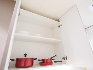 Kawalerka wyposażona jest w aneks kuchenny z płytą grzewczą, lodówką, mikrofalówką, tosterem oraz zestawem do parzenia kawy i herbaty. Znajduje się tu jedno łóżko oraz sprzęt do prasowania - żelazko i deska do prasowania. Goście mają także do dyspozycji pralkę, suszarkę na ubrania, sejf oraz ręczniki i pościel. Prywatna łazienka wyposażona jest w wannę lub prysznic wraz z szamponem i suszarką do włosów.