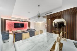 Situada a solo 500 metros de Marina Beach, Elan Suites 5-Bedroom Beach Villa en el distrito Jumeirah Beach Residence de Dubái ofrece un alojamiento espacioso con entrada privada y vistas al jardín. Este complejo de apartamentos cuenta con seis habitaciones y dispone de piscina exterior, aparcamiento privado gratuito y conexión WiFi sin coste adicional.