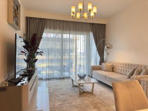 Elegantní a stylový 1pokojový apartmán Grand Blue se nachází v Dubaji a nabízí soukromý bazén a bezplatné WiFi, stejně jako bezplatné soukromé parkování. Apartmán má jednu ložnici a je situován pouhé 4 km od The Walk at JBR a 5,7 km od The Montgomery.