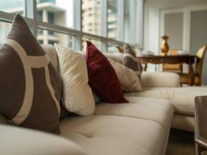 L'appartamento climatizzato dispone di una camera da letto con un letto, due bagni dotati di docce walk-in e vasche da bagno, oltre a pareti insonorizzate per assicurare un soggiorno tranquillo. Gli ospiti possono usufruire di un angolo cottura completamente attrezzato con piano cottura, frigorifero, lavastoviglie, macchina per il caffè, microonde, forno, tostapane, bollitore elettrico, utensili da cucina e tavolo da pranzo, sono inoltre disponibili set per tè e caffè. Tra le comodità in camera figurano biancheria da letto e asciugamani, ferro da stiro con asse da stiro, cassaforte personale, scrivania con zona salotto provvista di divano e armadio.